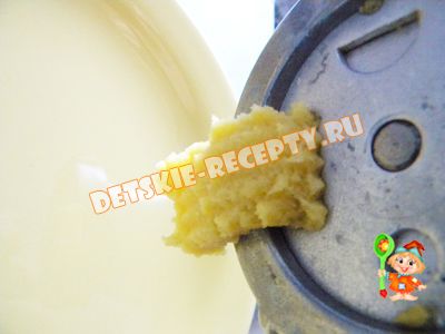 - 3 банана измельчить вилкой или блендером до пюре образной консистенции.