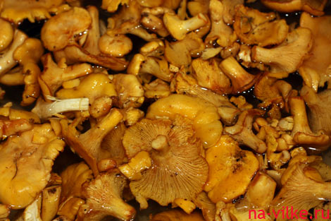 При сборе лисичек срезайте ножку так, чтобы не оставалось земли и прочей лесной грязи. Тогда дома нужно будет лишь замочить грибы на несколько минут, чтобы лучше отходил от гриба лесной мусор. И промыть каждый грибочек под проточной водой.
