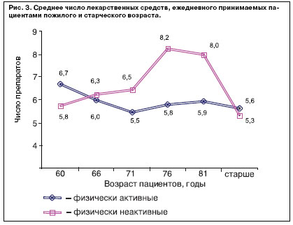 Физически более активные люди принимали меньше лекарств, а с увеличением возраста количество потребляемых лекарственных препаратов снижалось, что подтверждает известную истину: дольше живут менее больные люди.