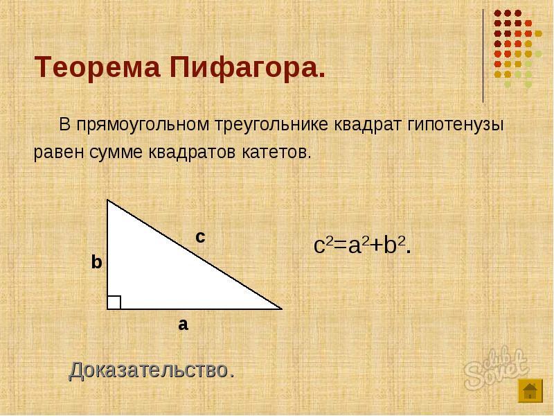 Теорема Пифагора, чтобы найти катет прямоугольного треугольника