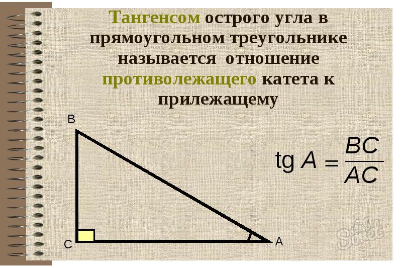 Тангенс острого угла равен отношению противолежащего катета к прилежащему катету.