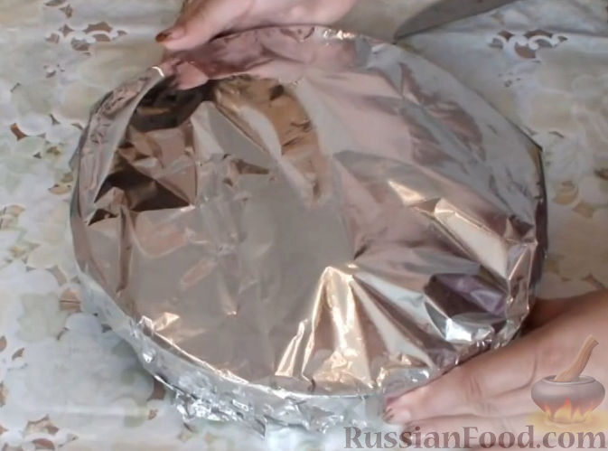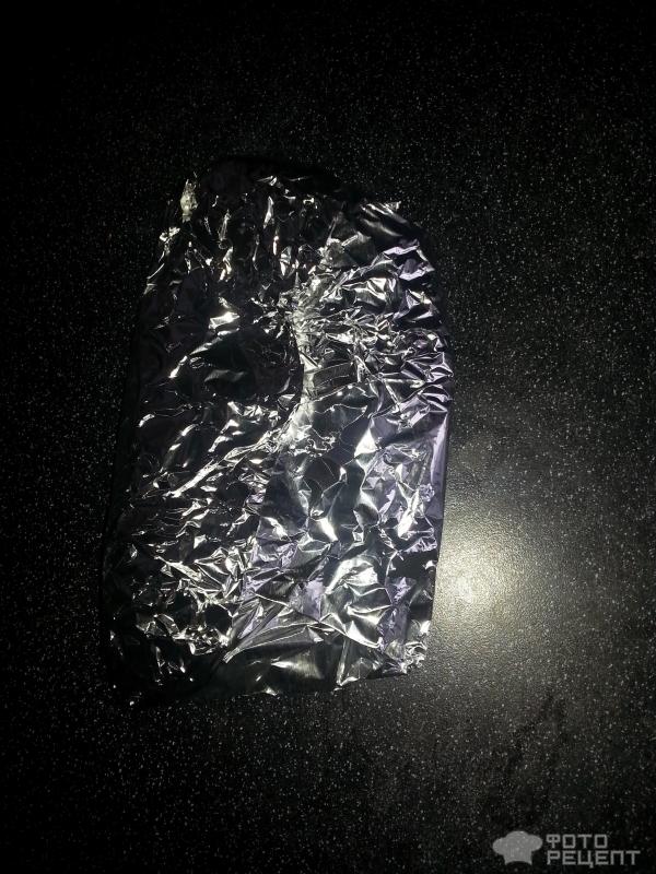- Поставьте «лодочку» на большой лист фольги, поднимите ее края и соедините сверху, чтобы не осталось ни малейших отверстий.