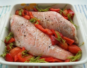 Рецепт 9: морской окунь, запеченный в духовке