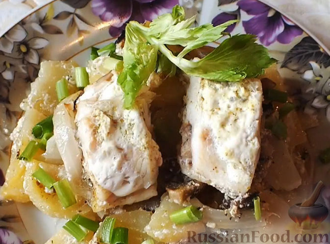 Окунь, запеченный с картофелем и сыром