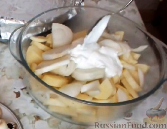Несколько ложек сметаны развести водой, чтобы получилась смесь, похожая на кисель. Не забывайте добавить соль и перец.