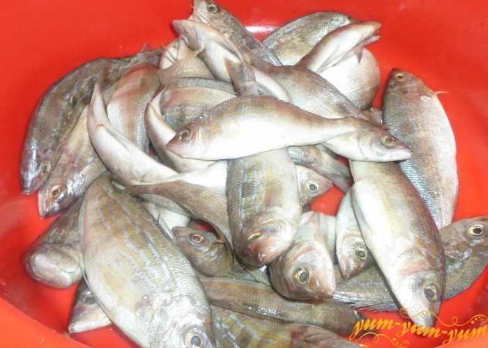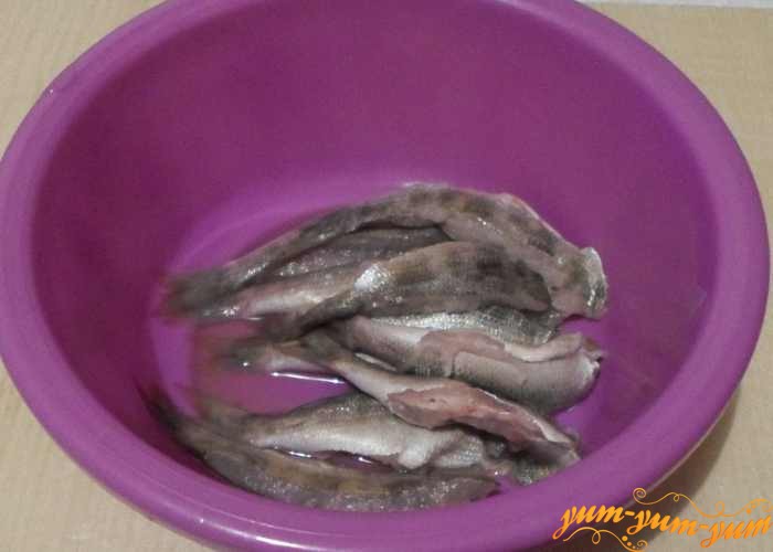 Помытую и подготовленную рыбы режем порционными кусочками — 3-4 сантиметра, если рыбка не большая, можно будет готовить ее целиком. Для этого аккуратно отделите филе и переложите в глубокую миску.