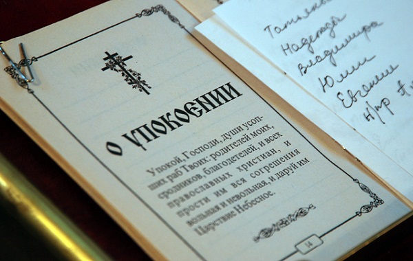 Чтобы помянуть в церкви своих умерших родственников нужно приготовить заранее записки с именами усопших. В записке крупными печатными буквами необходимо написать имена тех кого следует поминать. Все имена должны быть в церковном написании и в родительном падеже. В качестве пожертвования в храм принято приносить постные продукты — хлеб, сладости, фрукты, овощи. А вот мясные изделия или алкоголь (кроме Кагора) жертвовать не положено.