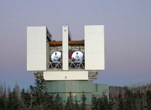 Телескопы Магеллана. Чили. Расположены на расстоянии 60 м. друг от друга, могут работать в режиме интерферометра.