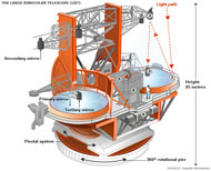 Итак, это — величайший зеркальный телескоп в мире. Который именуется… «Люцифер». Самый большой в мире телескоп бинокулярного типа с двумя параболическими зеркалами, диаметр каждого из которых составляет 8.4 м, называется именно так.