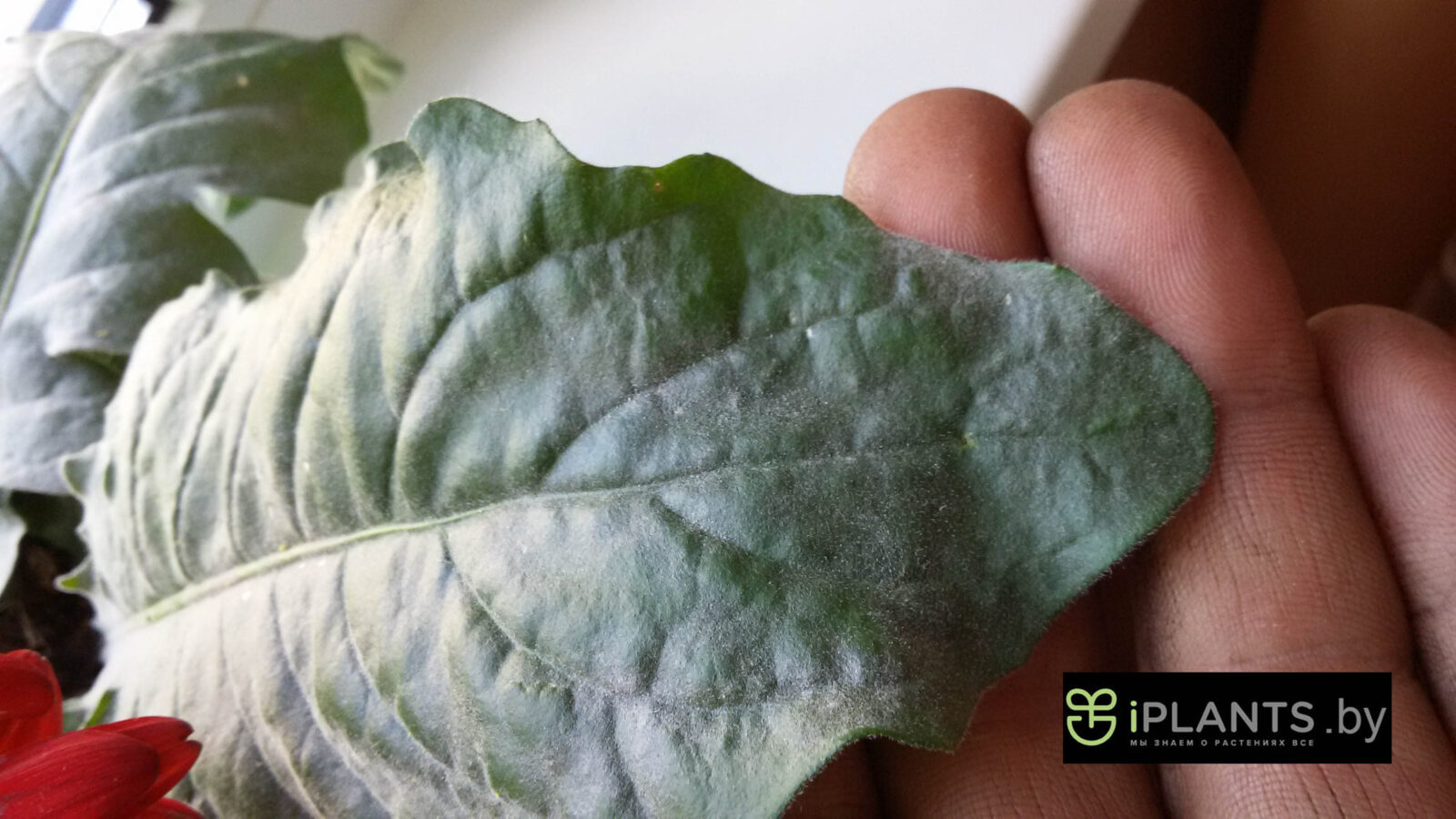 : Мучнистую росу можно узнать по серовато-белому налету или по характерным темно-коричневым шарикам на поверхности листьев и молодых стеблей. Со временем налет становится все плотнее и затем буреет.