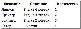 Существует множество вариантов морского боя, но мы с вами рассмотрим наиболее распространённый вариант со следующим набором кораблей: