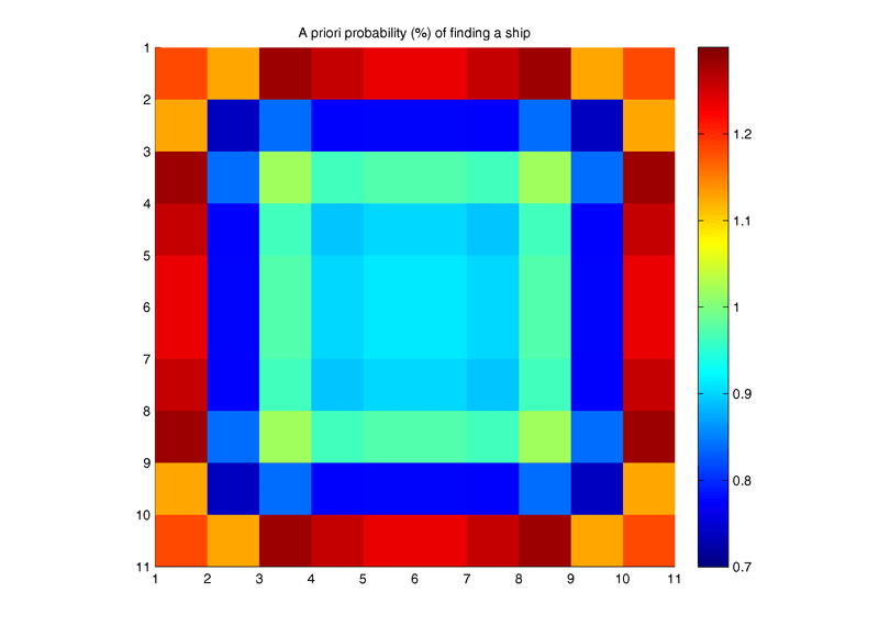 Если обратиться к математической теории, то можно построить карту вероятности размещения кораблей: