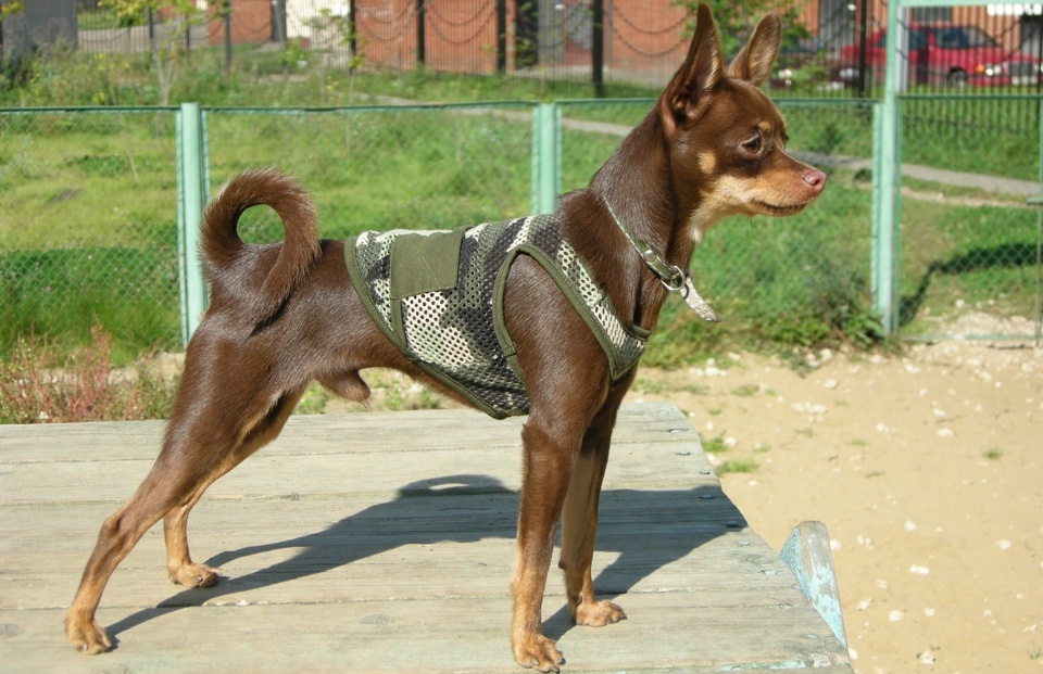 Порода, напоминающая добермана. Окрас: рыжий или черный с подпалинами. Рост — 30 см, вес — 6 кг. Это активные, бесстрашные собаки с интересной походкой. Прекрасно дрессируются. Кормить собаку лучше натуральными кормами, следить за тем, чтобы не передала. К детям относятся настороженно, от маленьких детей собаку лучше убрать.