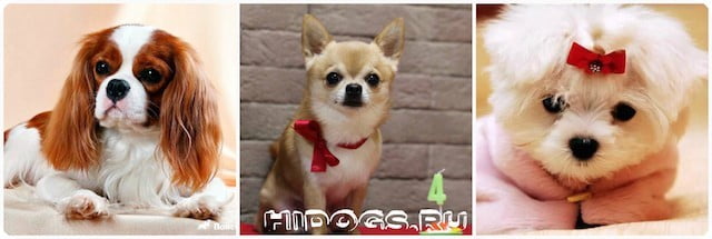 На фото: Кинг Чарльз спаниель, Чихуахуа, Болонка.