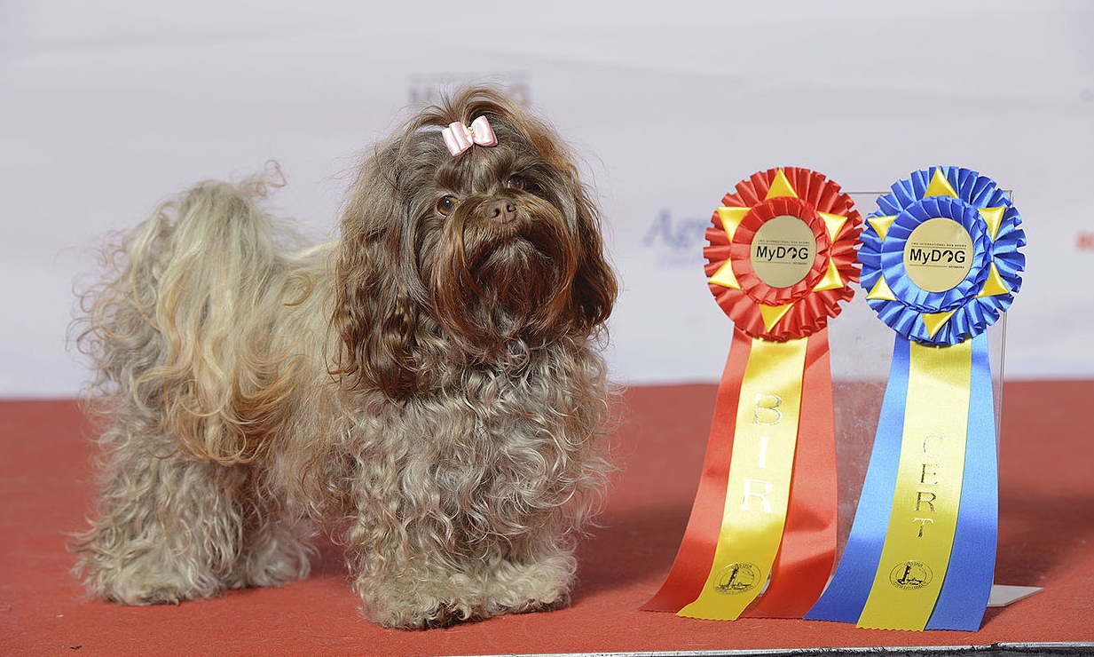 Миниатюрная довольно прихотливая порода собак. Есть целая классификация допустимых окрасов Ши-тцу. Рост — 27 см, вес — 8 кг. Характер сильный, поэтому нужно заниматься воспитанием. Дрессировке поддаются легко, воспринимая ее как игру. Питание может включать натуральные и готовые корма. Собака ладит с детьми старшего возраста.