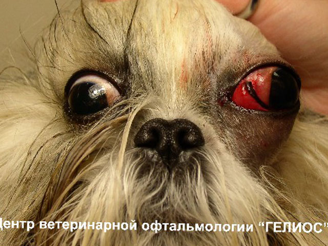 Выпадение глаз у собак ужасное и опасное заболевание, приводящее к полной слепоте. Часто выпадает глаз у таких пород собак, как пекинес, шитцу, мопс, что связано с особенностями строения морды. Также болезнь вызывается заболеваниями органов головы.