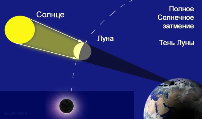 Солнце — это звезда, то есть тело «самосветящееся», в отличие от планет, лишь отражающих его лучи. Иногда на пути его лучей становится Луна и, как ширма, на некоторое время скрывает от нас дневное светило. Солнечное затмение может быть только при новолунии, но тоже не при всяком, а лишь тогда, когда Луна находится (при взгляде с Земли) не выше и не ниже Солнца, а как раз на пути его лучей.