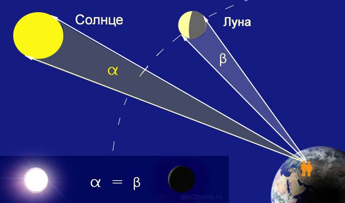 Солнечное затмение — это, по сути, такое же явление, как покрытие звезд Луной (то есть Луна движется между звездами и закрывает их от нас, когда проходит мимо). Луна, по сравнению с Солнцем, маленькое небесное тело. Но она очень близка к нам, поэтому может закрыть большое Солнце, находящееся намного дальше. Луна в 400 раз меньше Солнца и в 400 раз ближе его, поэтому на небе их диски кажутся одинаковыми по размеру.