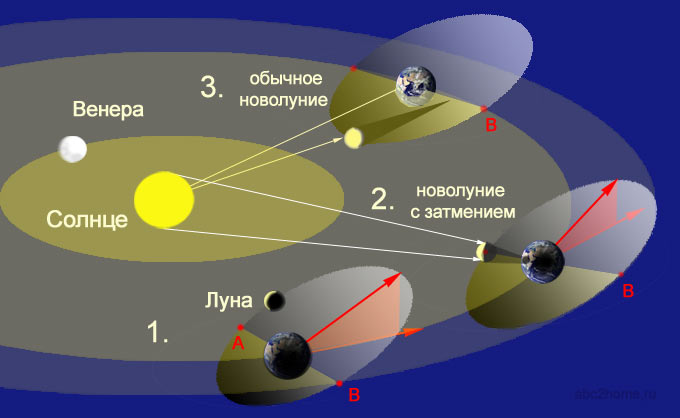 , когда сторона Луны, обращенная к Земле, не освещена, и сама Луна не видна. Затмения возможны только в том случае, если новолуние происходит вблизи одного из двух лунных узлов