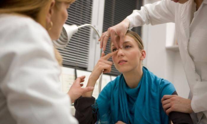 - При острых уголках переносицы.