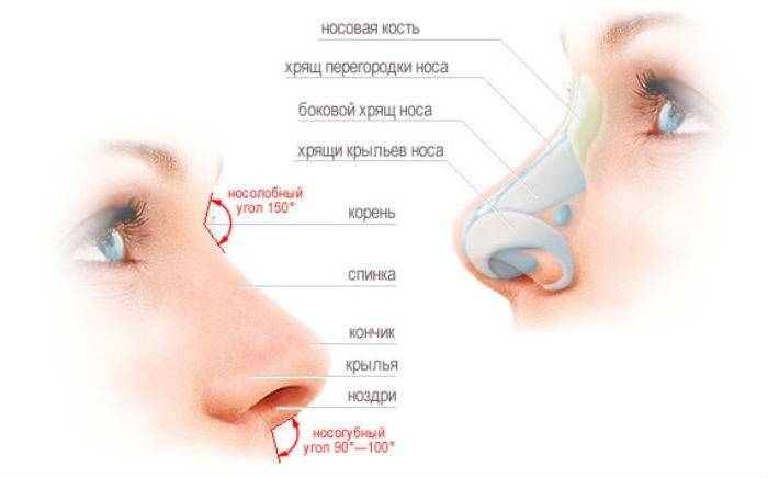 Чтобы более подробно понимать, какая часть требует коррекции, необходимо знать строение носа. Ознакомиться с ним вы сможете, рассмотрев изображение: