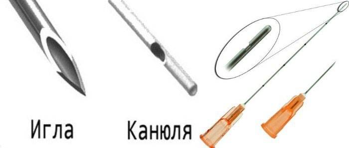Во время процедуры используется специальная игла – канюля. От привычной медицинской иглы она отличается тупым закругленным концом. Изготовлены канюли из хирургической стали, и отверстие для ввода инъекции находится сбоку. Применение таких современных усовершенствованных игл – несомненный прорыв в безоперационной коррекции (не только носа, но и подбородка, скул).