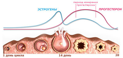 Прогестерон, как известно, соотносится к группе гестагенов. Продуцируется он жёлтым телом, которое образуется в конце менструального цикла. Данный гормон способствует переходу слизистой матки из фазы пролиферации, которая контролируется фолликулярным гормоном, в секреторную.