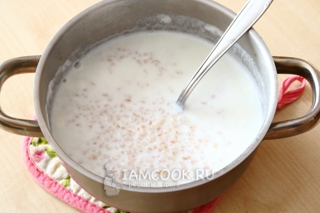 - Каша на молоке варится аналогично, только после впитывания воды в крупу добавляется молоко (в зависимости от желаемой консистенции) и уваривается до готовности.