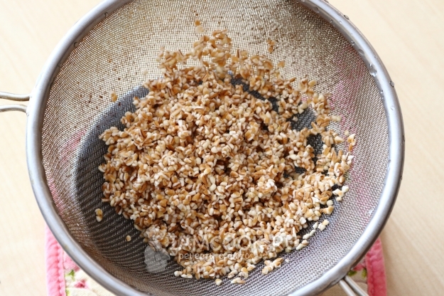 В это время пшеничную крупу тщательно промываем под проточной водой.
