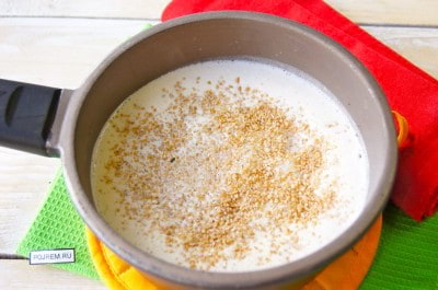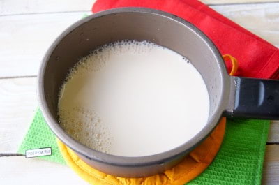 Для начала налейте в сотейник молоко и доведите его до кипения на среднем огне. Следите, чтобы молоко не убежало.
