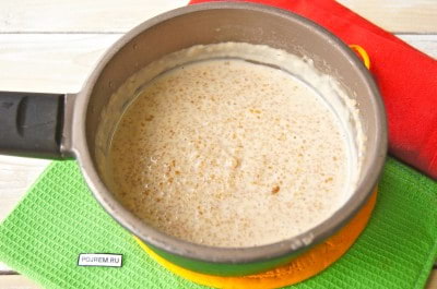 - Налить молоко в ковшик и поставить на сильный огонь, довести до кипения;