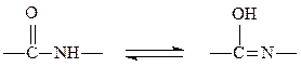 б) у связи -CO-NH- особый характер, она меньше, чем обычная, но больше, чем двойная, то есть существует кетоенольная таутомерия :