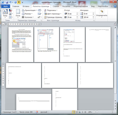 Как в Ворде сделать альбомную ориентацию для нескольких страниц