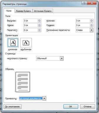 - по щелчку на кнопке «Поля» можно выбрать отступы из шести шаблонов или задать их по желанию;