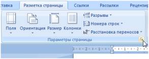 - щелкаем левой кнопкой мышки по стрелочке в правом нижнем углу раздела «Параметры страницы