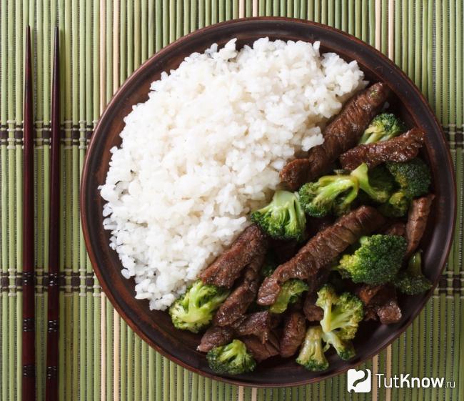 Подавать острую жареную говядину следует с кунжутным или любым другим соусом. К такому мясу на гарнир предпочитают отварной рис или лапшу.