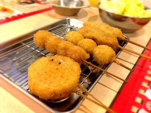 В регионе Кансай популярно блюдо, в котором мясо и овощи надеваются на шампура, а потом обжариваются в кляре, как тонкацу. Существует много различных видов кусикацу, поэтому вы сможете при желании насладиться большим разнообразием вкусов.