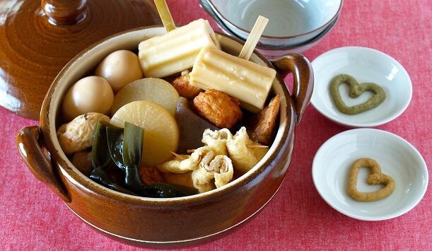 Несмотря на то, что между японскими регионами весьма часто существуют большие различия в приготовлении блюд, типичным оденом является блюдо, в котором дайкон, мясные и рыбные шарики, вареные яйца и другие ингредиенты варятся в бульоне из сушеного бонито или конбу, смешанного с соевым соусом. Попробовать оден можно в специализированных ресторанах oden, также это блюдо продаётся в обычных магазинах.
