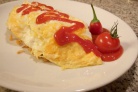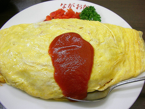 Чтобы приготовить это блюдо, нужно обжарить вместе рис, курицу и лук, приправленные кетчупом, а затем залить тонким слоем омлета. Полученное блюдо принято сверху поливать соусом demi glace. Рисовый омлет очень популярен у детей, но и взрослые его тоже любят. Это блюдо можно найти в ресторанах западного стиля и ресторанах с комплексным меню.