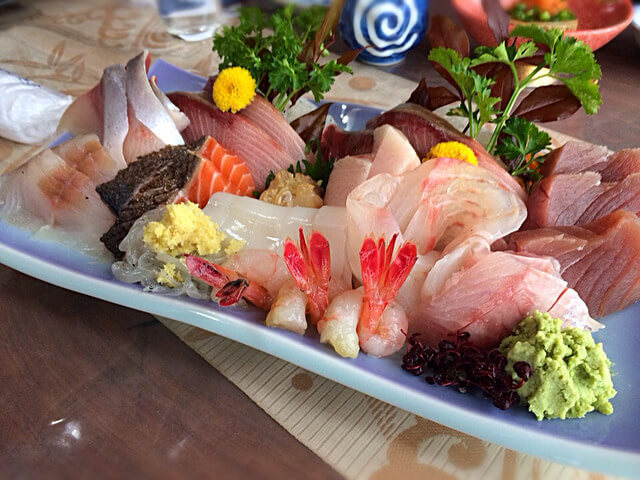 Сашими — традиционное японское блюдо из сырой рыбы, нарезанной кусочками. Подается с соевым соусом. Добавляя такие приправы, как васаби или имбирь, сашими становятся еще более вкусными.