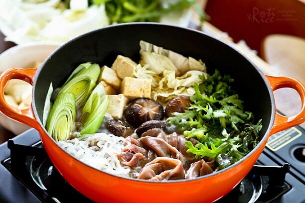 Сукияки — это блюдо, в котором мясо и овощи тушатся в железном горшочке. Добавляемый в сукияки соус, известный как warishita, изготавливается из соевого соуса и сахара.