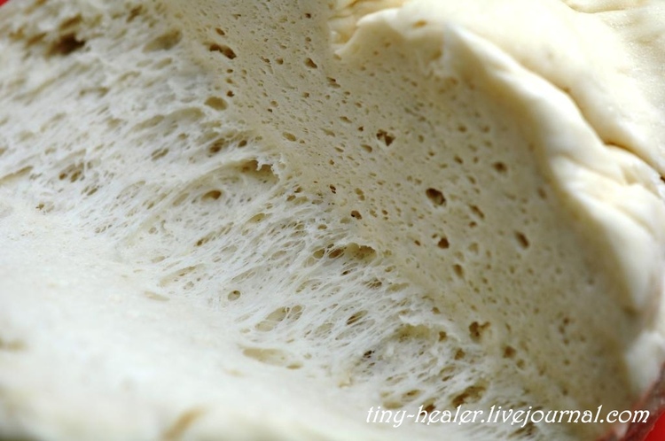 Брожение теста — около часа, до увеличения вдвое, все как обычно.