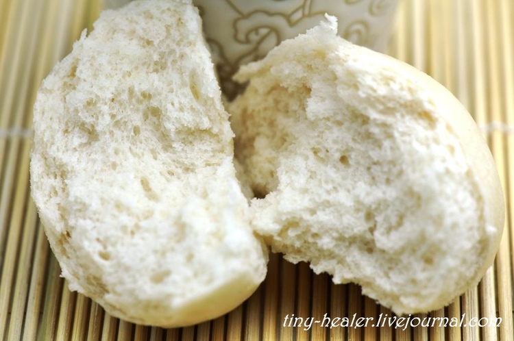 И еще одно их свойство я обнаружила на следующий день. Если разрезать булочки вдоль и поджарить их в тостере по два ломтика с каждой стороны – очень недолго, 1-2 минуты, — получится до невозможности вкусно. Корочки у них действительно нет совсем, и никакой тостерный «хлеб без корки» с ними не сравнится. Поджаренные в тостере паровые булочки, деликатно-золотистые снаружи и воздушные внутри — это просто сказка!