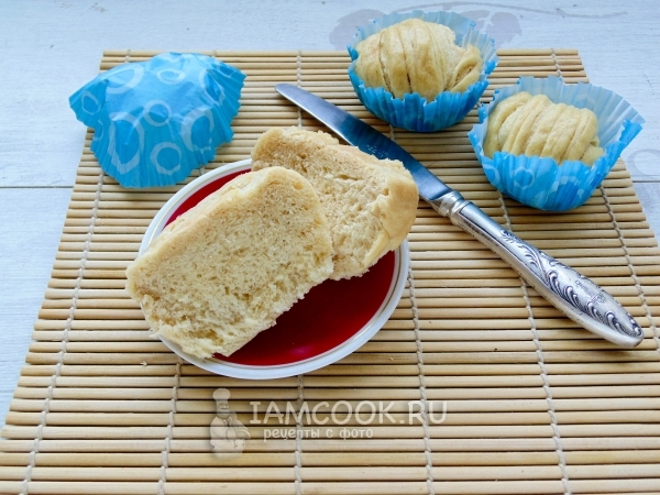 Выливаем молоко в миску, туда насыпаем просеянную муку и разрыхлитель. Месим тесто. Выкладываем его в формочки для кекса из пергаментной бумаги. Но поставим не в духовку, а в пароварку. Обычно получается 8 булочек. Парим в течение 15 минут. И все – готово! Подавать такие изделия стоит с джемами, сгущённым молоком или специальными соусами, или блюдами японской, китайской кухни.