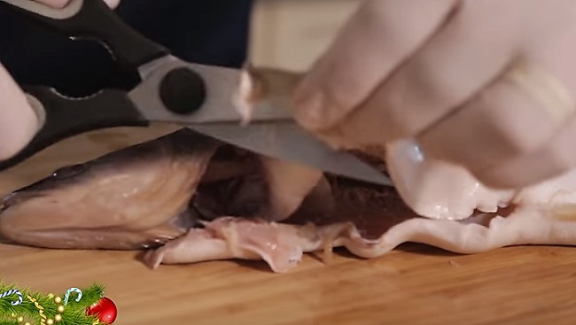 - Очистите голову от плавников и уберите жабры, тщательно вымойте.
