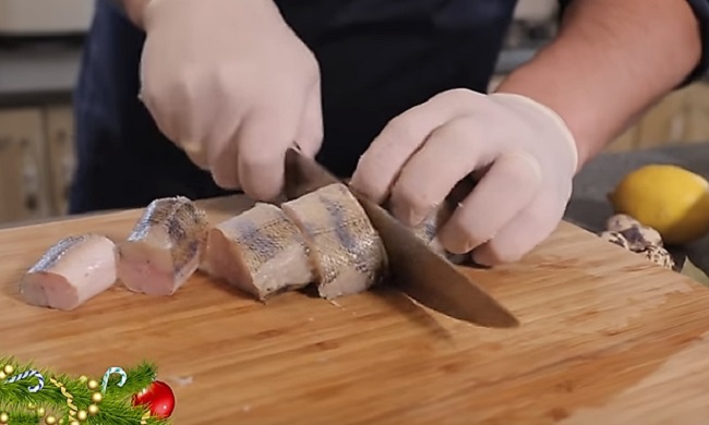 5. Готовую рыбу охладите, очистите от всех косточек и нарежьте на кусочки.