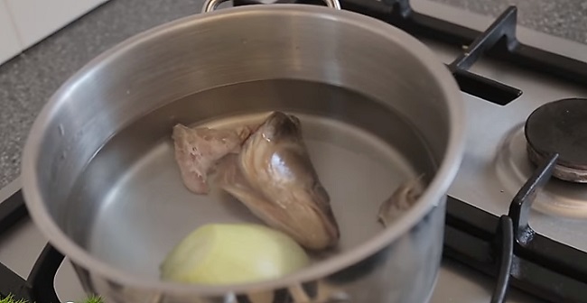 - Помыть пеленгас, отделить филе и сварить остальные части. После закипания максимально уменьшить газ и оставить на 1 час.