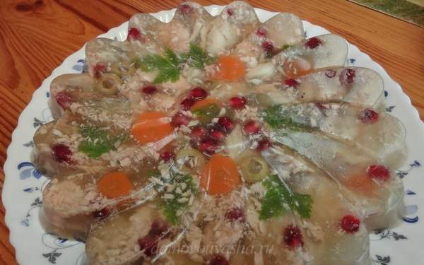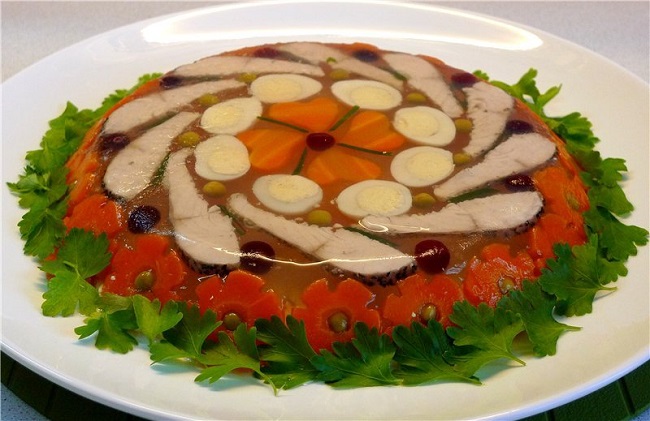 Статья закончилась и очень бы хотелось, чтобы она вам понравилась и в результате вашей кулинарной деятельности на праздничный стол появлялись не просто аппетитные холодцы, заливные и студни, а творческие шедевры.