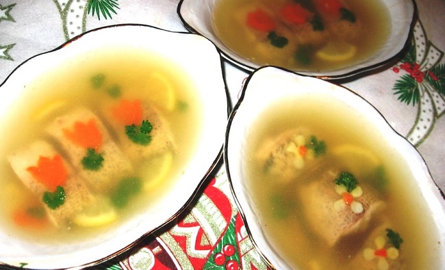 Одним из оригинальных рецептов из рыбы является заливное, пришедшее из романтичного Парижа. Хоть это блюдо и не является русским, оно быстро набрало популярность и стало занимать почетное место на праздничных столах.