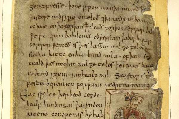 После 6-го века, когда христианские монахи начали транслитерацию англо-саксонского с помощью латинских символов, они столкнулись с некоторыми сложностями. Англо-саксонский содержал несколько звуков, которые невозможно было записать латиницей. Потому монахи позаимствовали три старые руны: ð (межзубной звонкий з), þ (межзубной глухой с), и Ƿ (уинн, аналог современной W). Наличие этих рун, лигатур (соединения букв) æ и œ, а также отсутствие J и Y – одна из характерных особенностей англо-саксонского алфавита. Посмотрите на рукопись Беовульфа.